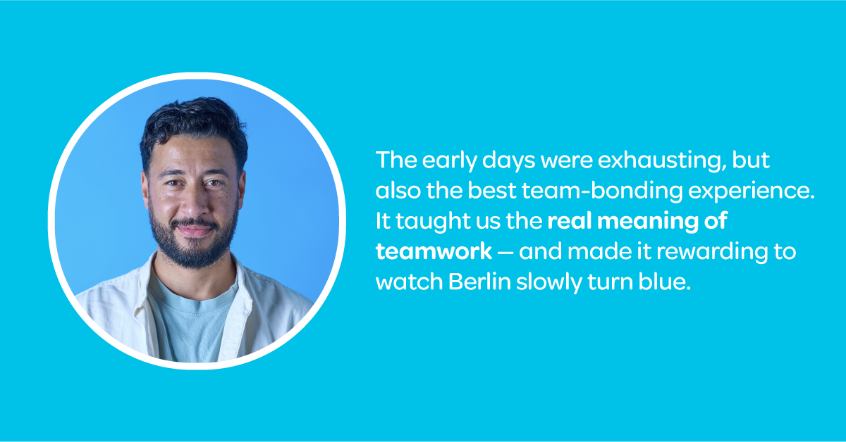 ‘The early days were exhausting, but also the best team-bonding experience. It taught us the real meaning of teamwork — and made it rewarding to watch Berlin slowly turn blue.’