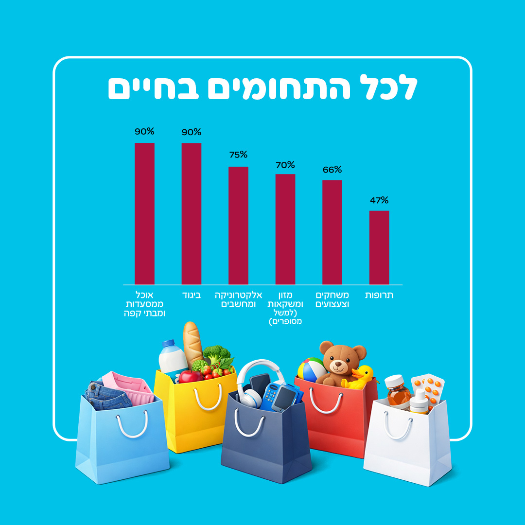 הנתונים סביב ביטחון לא משאירים מקום לספק. שליש מגבירים את הקניות אונליין בתקופות ביטחוניות. במתיחות ביטחונית ובהסלמות נקודתיות, הצרכנים לא משנים את סוג המוצרים אלא רק את התדירות ואת הכמות. בזמן מבצע "עם כלביא" לדוגמה, שליש רכשו יותר באונליין, אך סל הקנייה נותר דומה. המשמעות ברורה: האונליין אינו רק נוחות, אלא מנגנון תפעולי של יציבות ישראלית. נתון מרגש נוסף- 40% מהישראלים מעידים שהזמינו יותר מעסקים מקומיים מאז ה-7.10.